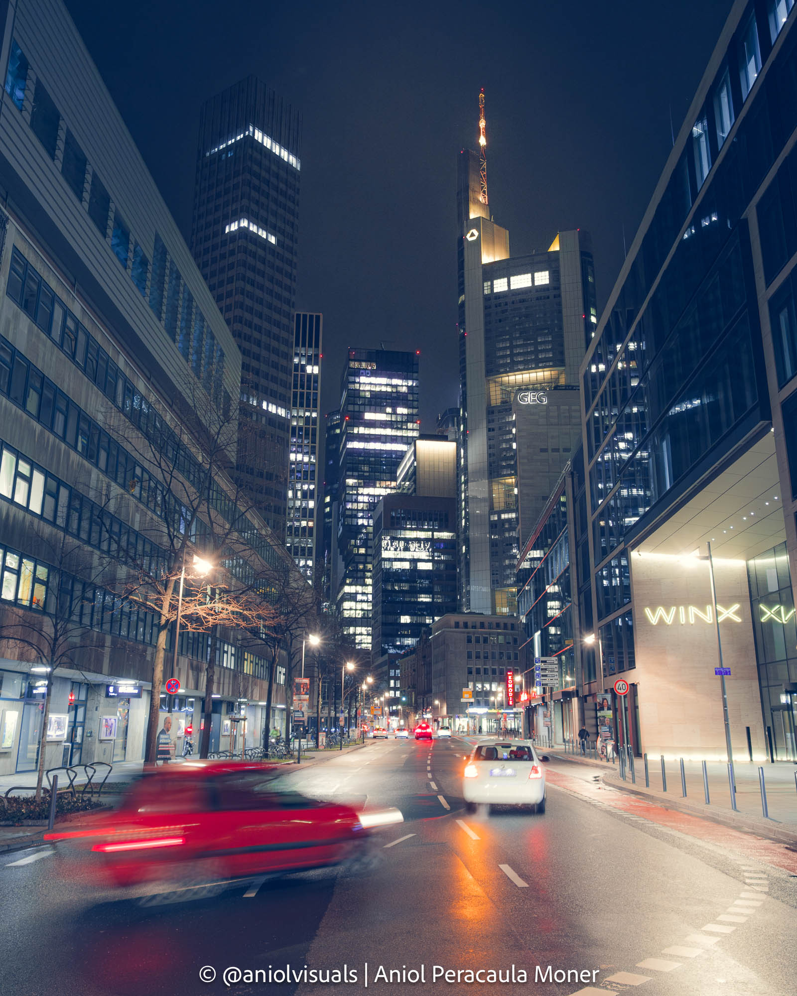 What makes me list it as one of the Frankfurt photography spots is the contrast between the Opera building and the skyscrapers. It’s less noticeable during daytime, but at night, it’s very clear how two different worlds (or not so different) collide.