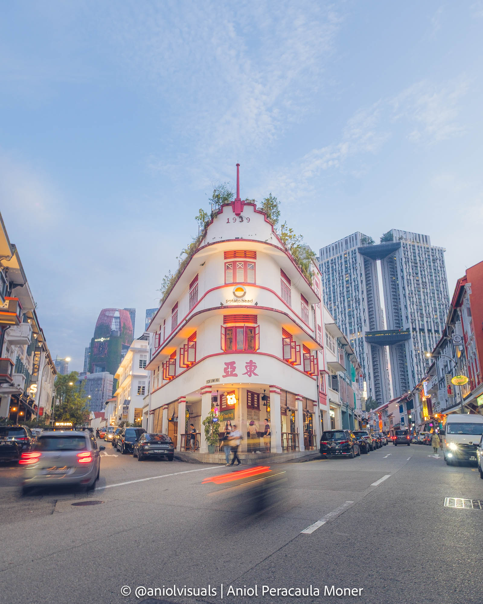 Potato Head is a burger restaurant. We are not discussing burgers here, but the building where it is located. It is one of the few colonial buildings I liked. When searching for photography spots online, you will find the Koon Seng Road Colourful Houses, which are quite far away from the centre, and which I also didn’t find particularly photogenic, or that offered lots of space for creativity. This one, though, due to its location, made for a nice photo.