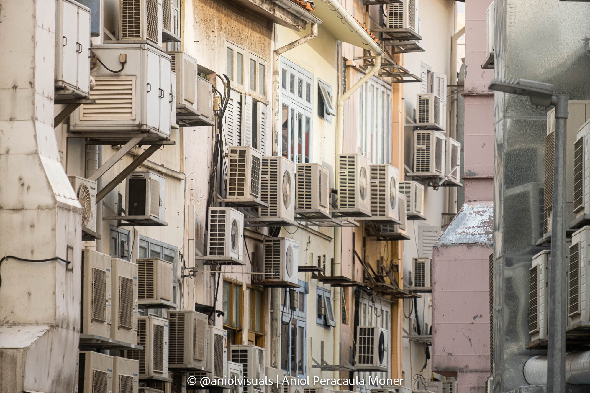 This is an interesting spot, one that I haven’t seen that much online. While the photo is in one specific street, you can find more like this if you wander around Singapore. Due to the high temperatures and the humidity, all shops, bars, restaurants, hotels… have the aircon on almost 24/7. Thus, the aircon machines must be somewhere, usually on the back streets or little alleys. This specific one is on the street parallel of Circular Rd.